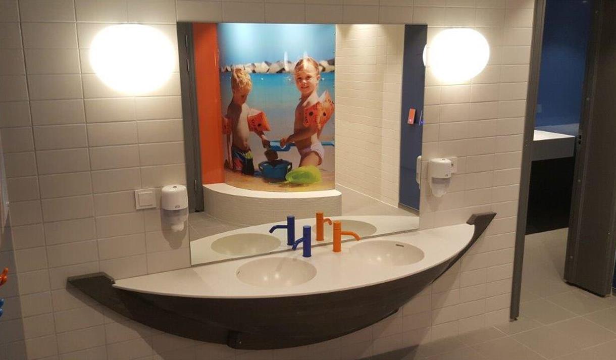 HC-toalettene i servicebygget er HC-vennlige. Toalettene i leilighetene er ikke helt optimalt tilrettelagt for de med mindre funskjonsevne.