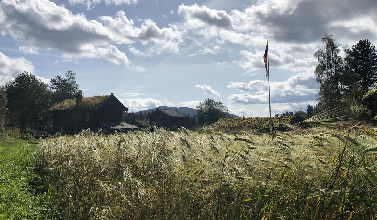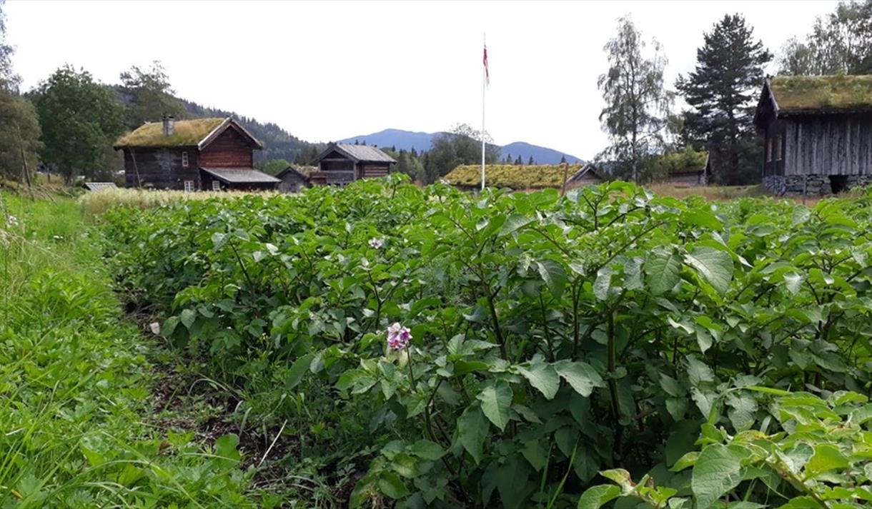 Haustingsdagar i museumsåkeren i Eidsborg. 14. september haustar museumsbonden Daniel potet og andre grønsaker, 21. september skjer han kornet (bygg) og set det på staur til tørking og 28. september haustar han linen, som seinare skal tørkast i badstoga på museet.
