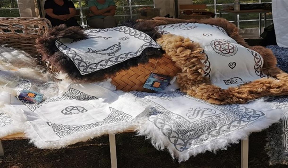Ingun Momrak-Haugan driv med skinnfellar, der ho trykkjer og syr på saueskinn frå eigne sauer. 13. juli vil ho vise fram forskjellig arbeid med skinnfellar i Øyskogen. Ingun vil óg drive med småarbeid som saum av skinnhjarte. Ho tek med seg utstyr slik at du også kan få prøve dette handverket! Det blir anledning til å kjøpe produkt ho har med, og ho tek og imot bestillingar.
