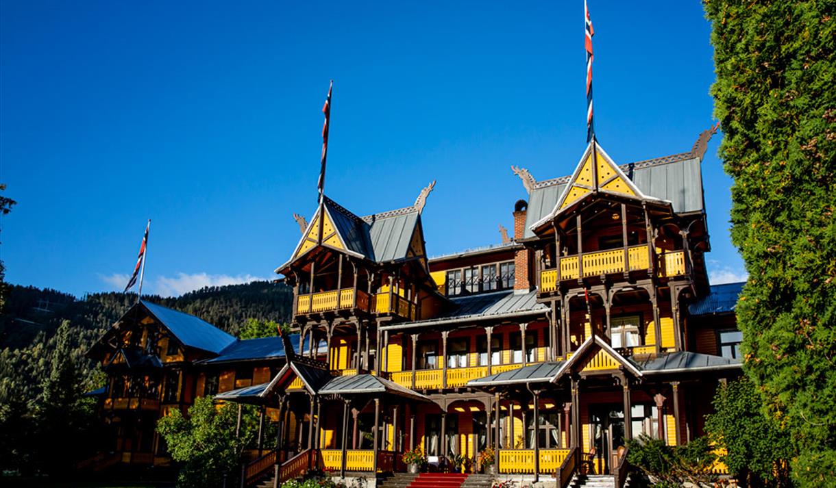 Dalen Hotel, eventyrhotellet fra 1894, i overdådig, romantisk stil med dragehoder, tårn…