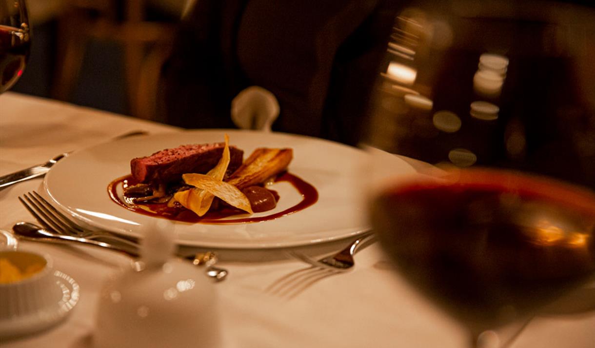 I tråd med hotellets historie og eleganse, er menyene inspirert av klassisk fransk matkunst, kombinert med sesongens ferske, norske råvarer fra egen kjøkkenhage og lokale produsenter.