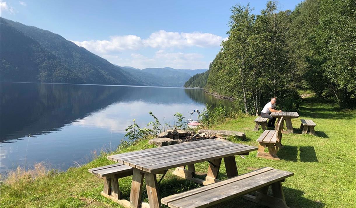 Lindeviki er einaste plassen det er høve til å campe på nordsida av Bandak mellom Lårdal og Straumane i Kviteseid. Du bør halde nordsida av vatnet for å sjå den.