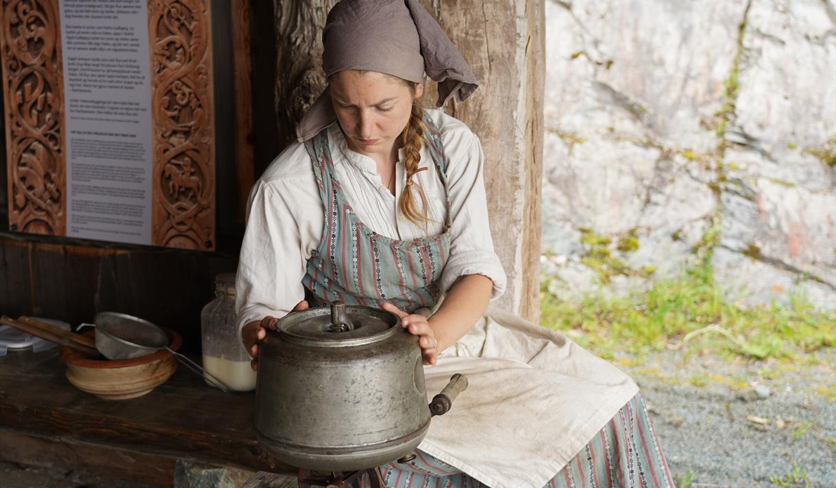 I løpet av sommaren kan du oppleve forskjellige aktivitetar ute på jordet eller ved husmannsplassen. Hesten vert bruka flittig mellom anna til pløying og framkøyring av tømmer.