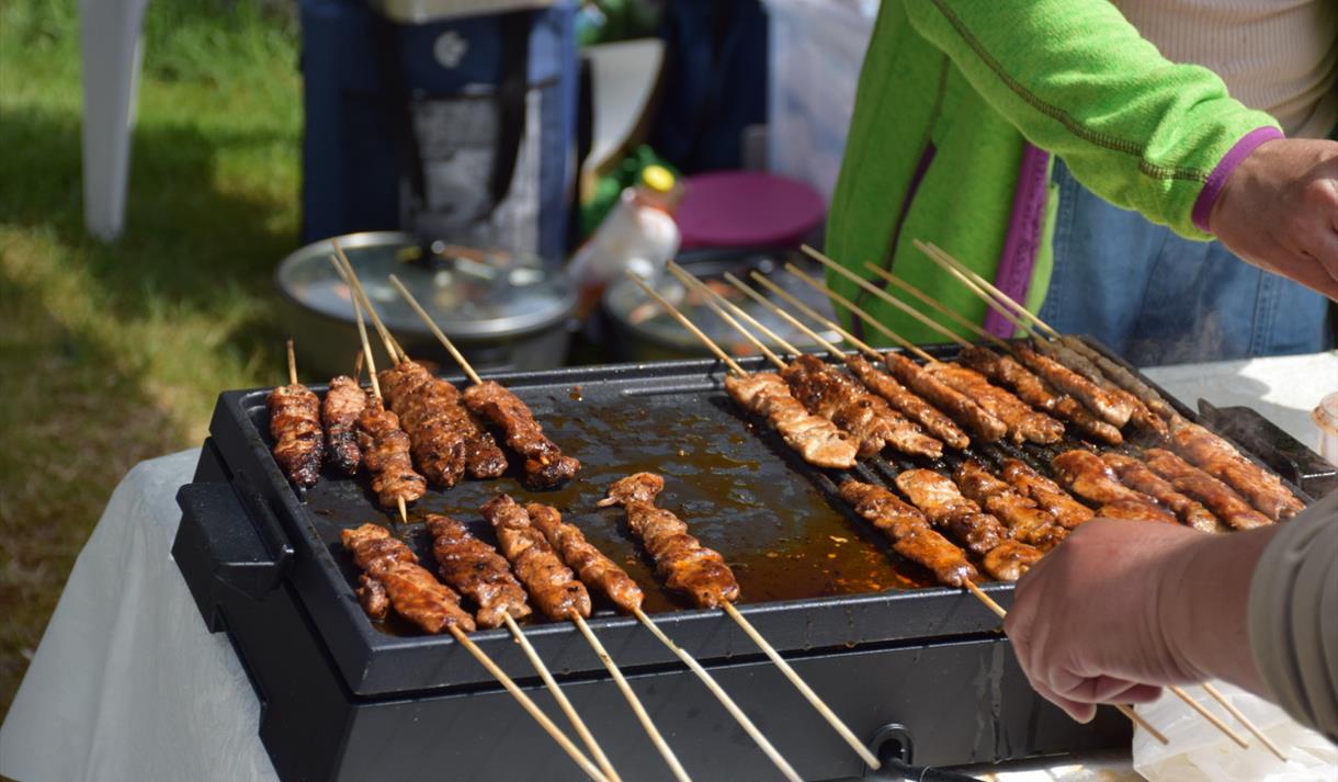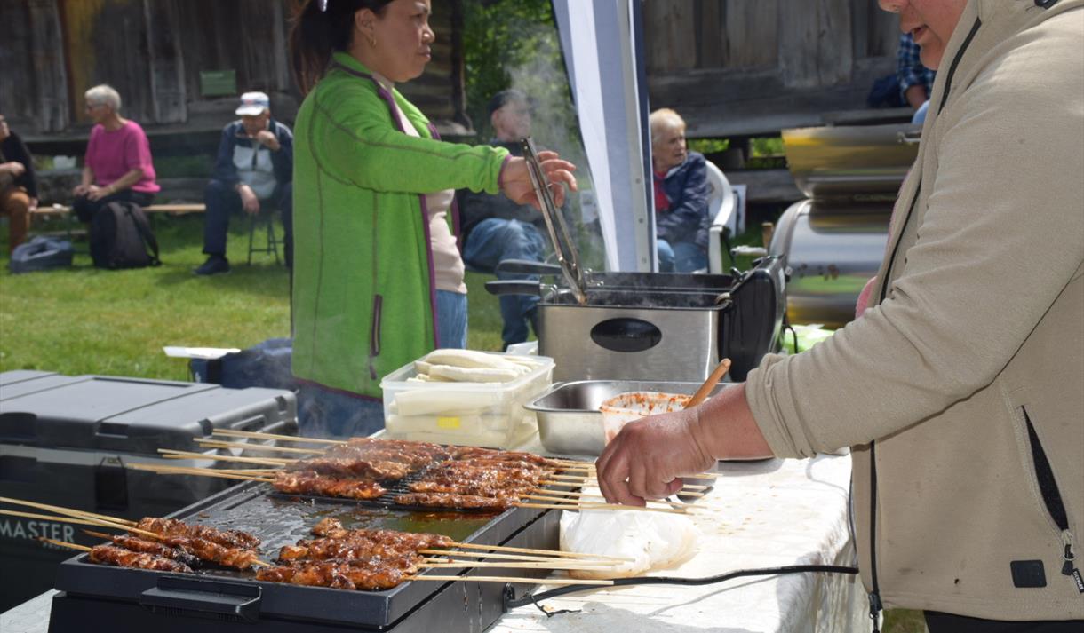 Servering av asiatisk mat i Øyskogen. Det blir sal av asiatisk mat ved Marife: vårullar, nudlar, grillspyd og scampi.