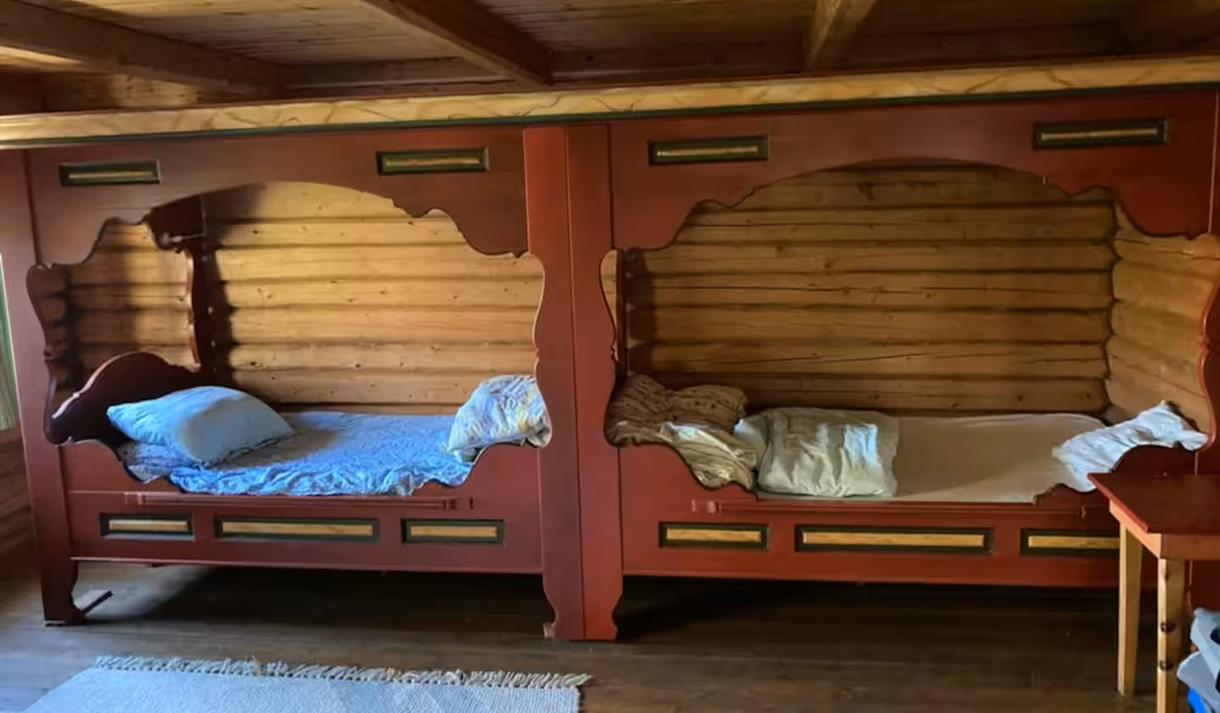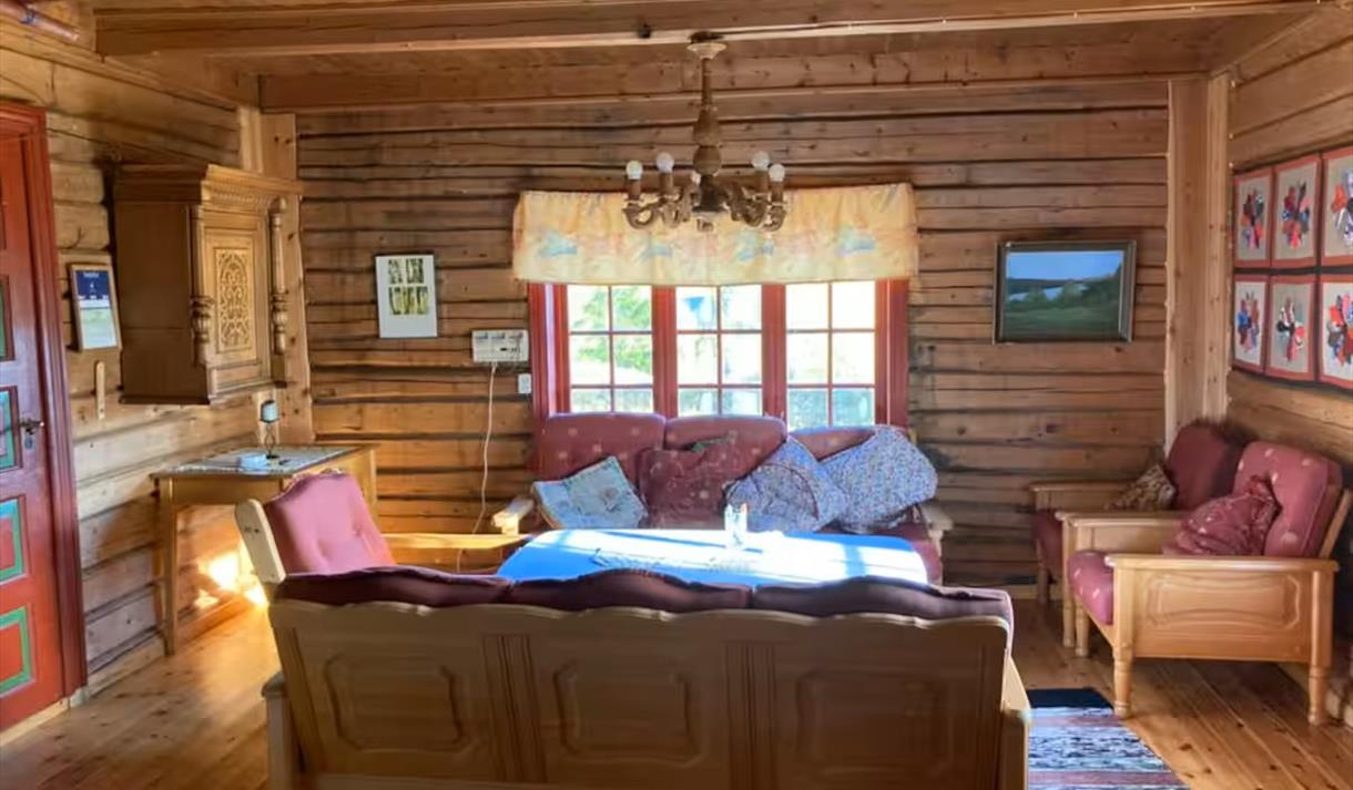 Den består av to stuer, kjøkken med kokeutstyr og servise, samt et gangområde hvor det finnes et propankjøleskap. I andre etasje er det tre soverom i bruk, med til sammen sju sengeplasser (én dobbeltseng). Det ligger sommerdyner og puter i sengene, men gjestene må ta med egne sengeklær (dynetrekk, putevar og laken).