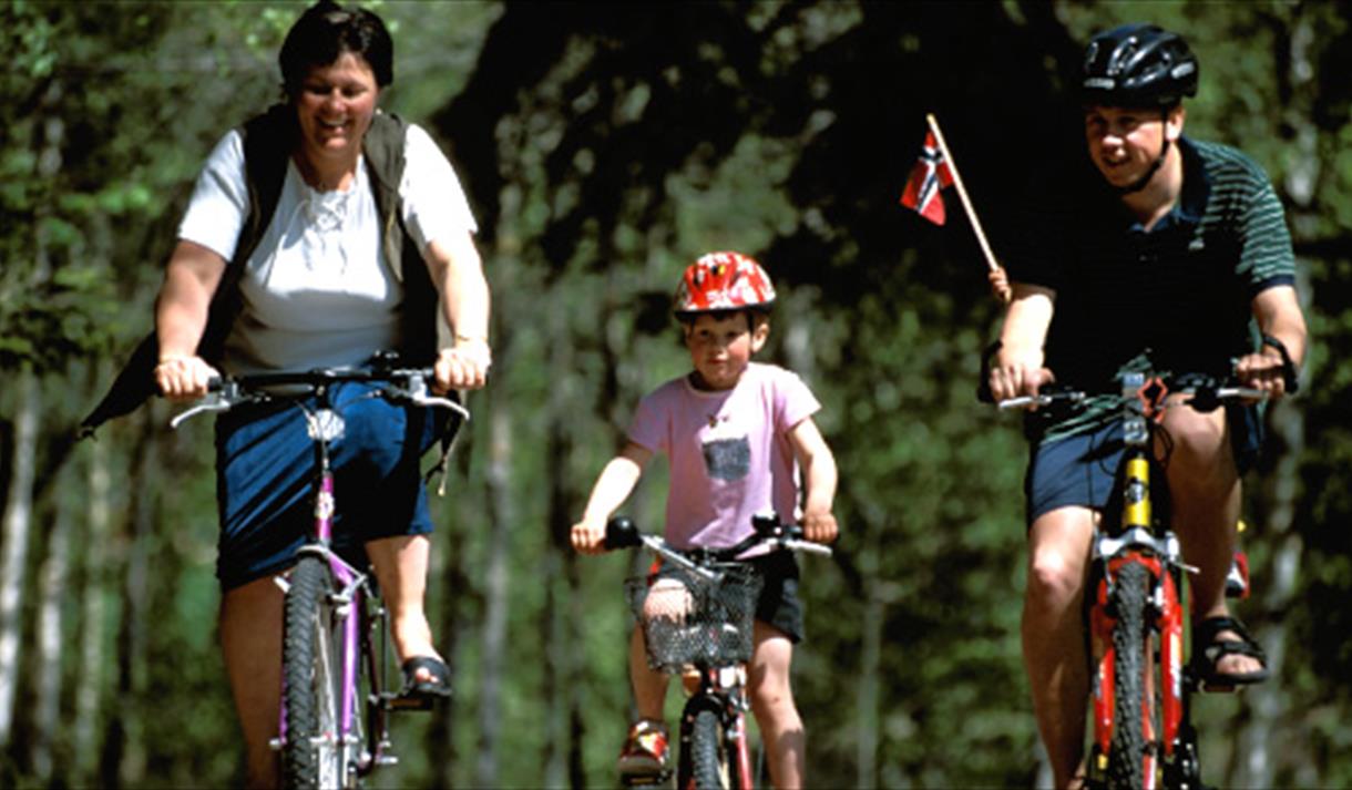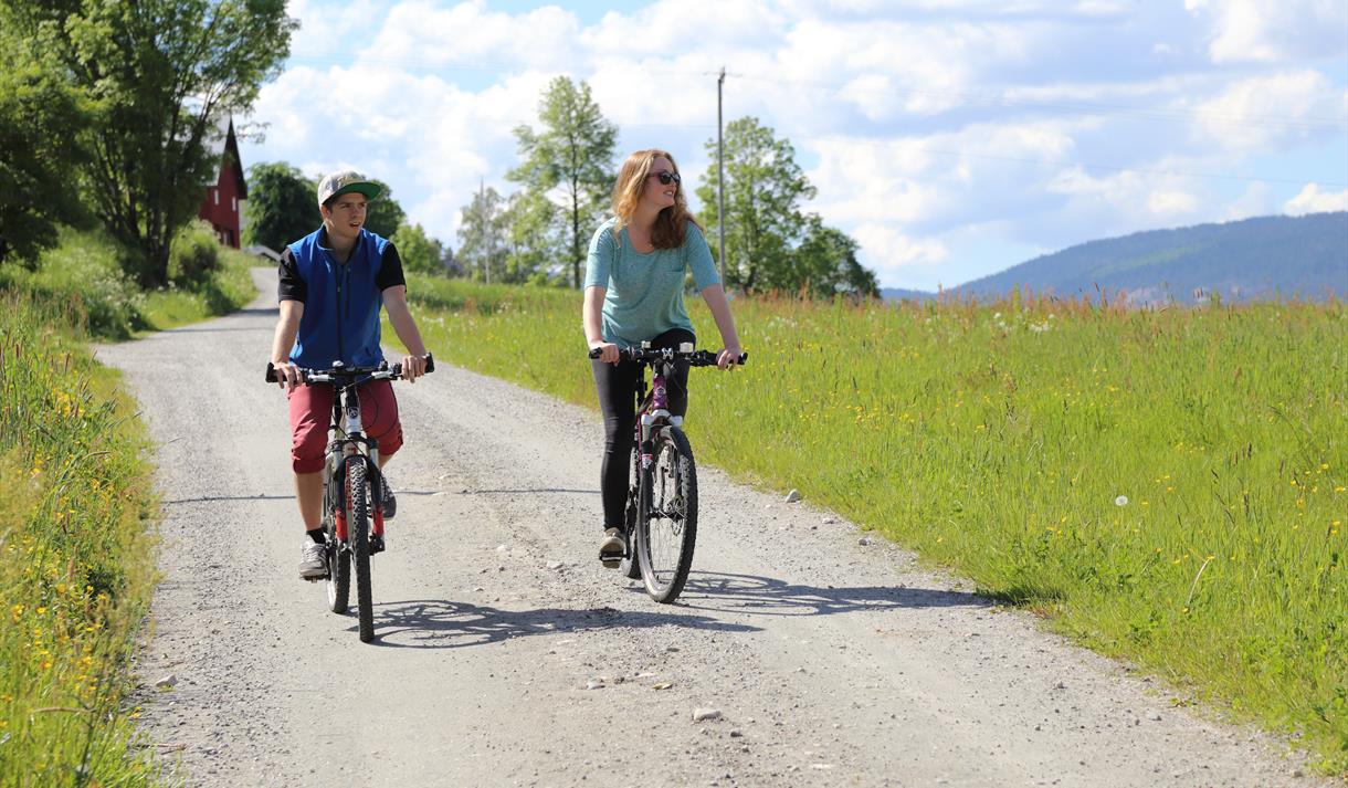 Tak fyrste veg til venstre inn i skogen, fylg denne forbi Granheim og vidare langs elva til Haugfoss. Herifrå må du sykle over brua, tak til høgre og fylg den gamle ferdselsvegen gjennom skogen fram til Heggland Daglegvare.