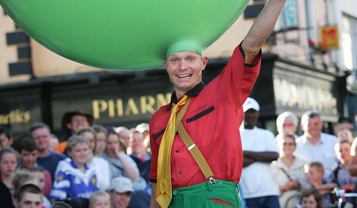 Opplev den originale mega-ballongmannen som blir borte i en kjempeballong, luftakrobaten på den meget høye giraff-sykkelen, tryllekunstneren, sykkel-ekvilibristen og sjongløren.