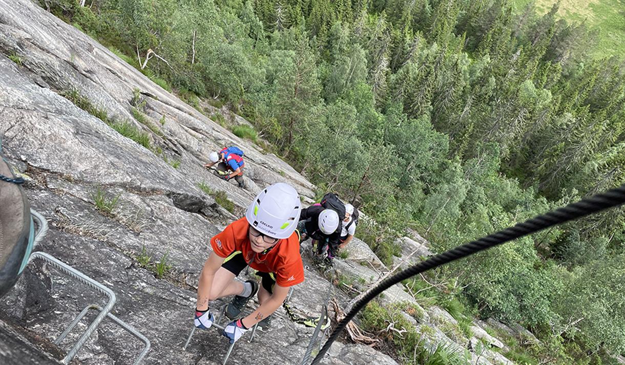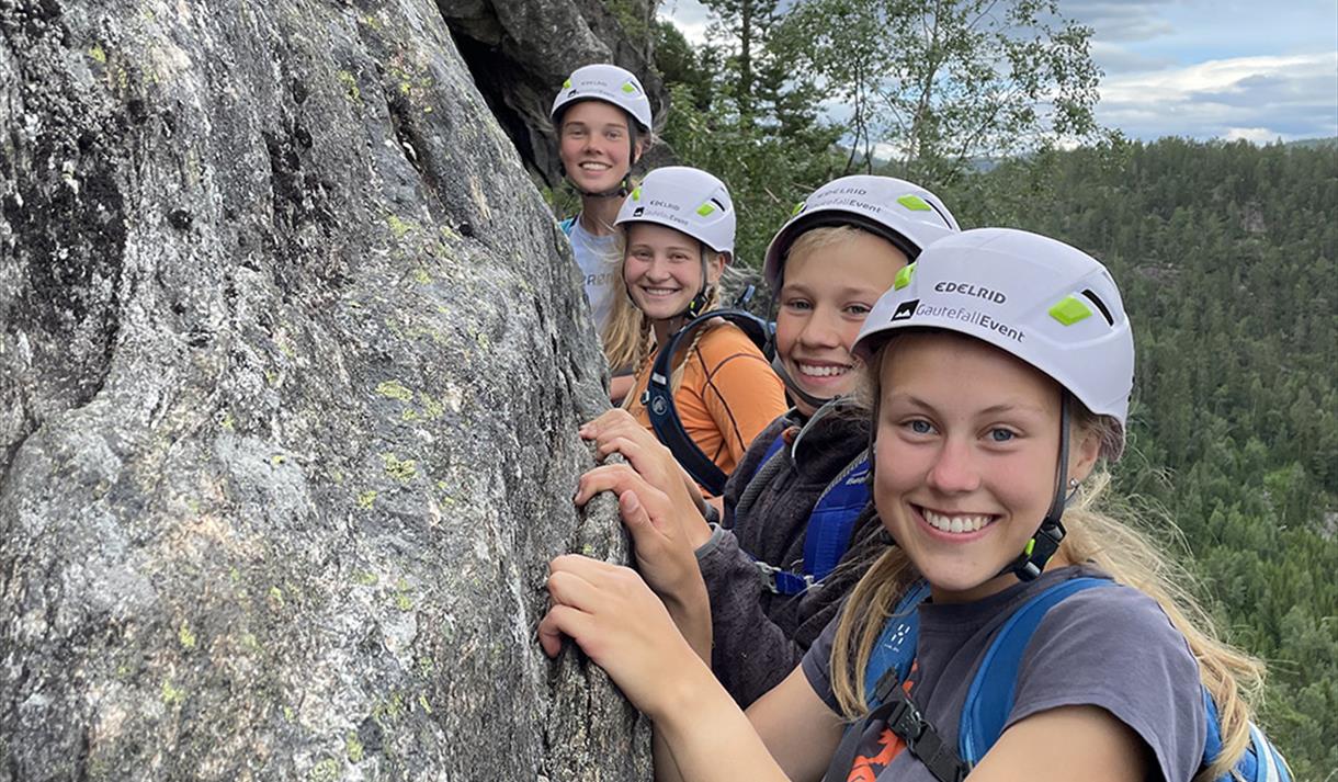 Ønsker du å prøve deg på klatring, men er redd for at du ikke greier det? Da kan du trygt bli med Gautefall Event på en guidet klatretur opp mot toppen av Hegneknuten (577 m.o.h.). Takket være en tilrettlagt klatresti faller du ikke ned. Og du blir guidet av kyndige klatrere hele tiden. Du bør være i god fysisk form og ikke ha høydeskrekk. Det anbefales en aldersgrense fra 10 år og oppover.