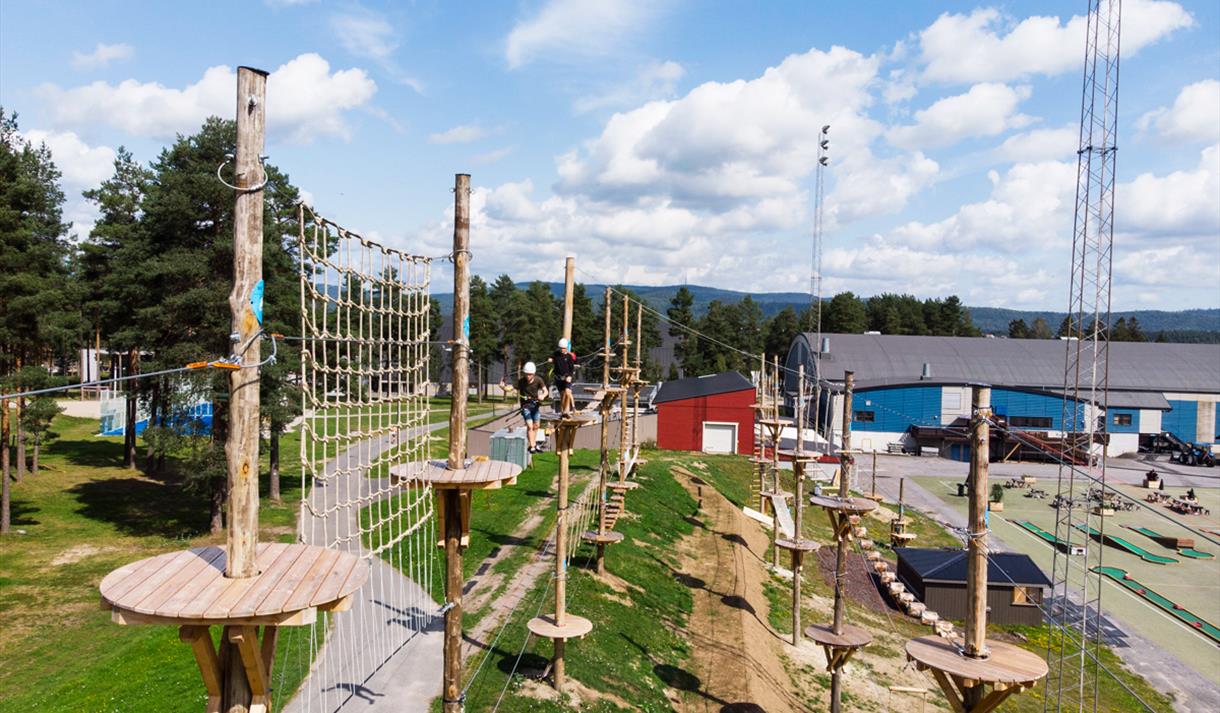 Ute i aktivitetsparken finnes det et mylder av aktiviteter for både store og små, både høyt og lavt. Vi anbefaler klatrepark, minigolf og gyrotrampoliner. Gjør besøket til en dagsutflukt – ta med grillmat!