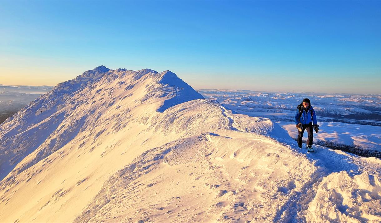 Dette er en krevende fjelltur med oppstigning på 725 m i vinterterreng og det er viktig med riktig utstyr og å være forberedt på værendringer.