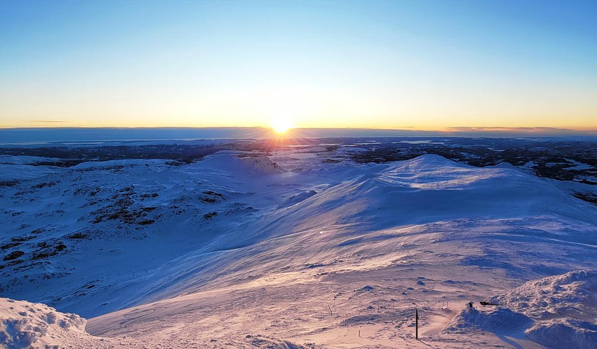 Norges beste utsikt i soloppgangen*! Når du står på toppen av Gaustatoppen så kan du se i alle retninger 360 grader. Fjellet er det høyeste i Telemark og den sør-østlige delen av Norge hvor det troner over alle andre topper. Man kan se over store deler av Norge fra toppen, opp mot 60.000 km. Vi starter turen fra Gaustabanen sin parkeringsplass (1151 m) hvor vi gjør oss klar.