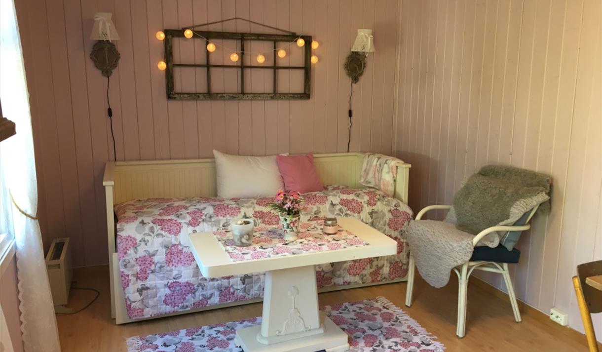 Hvis du er interessert i å leie en liten hytte for fire personer, kan du kontakte Vigdis Skou på telefonnummer 930 33 158. Hun vil kunne hjelpe deg med å arrangere et hyggelig opphold på øya.