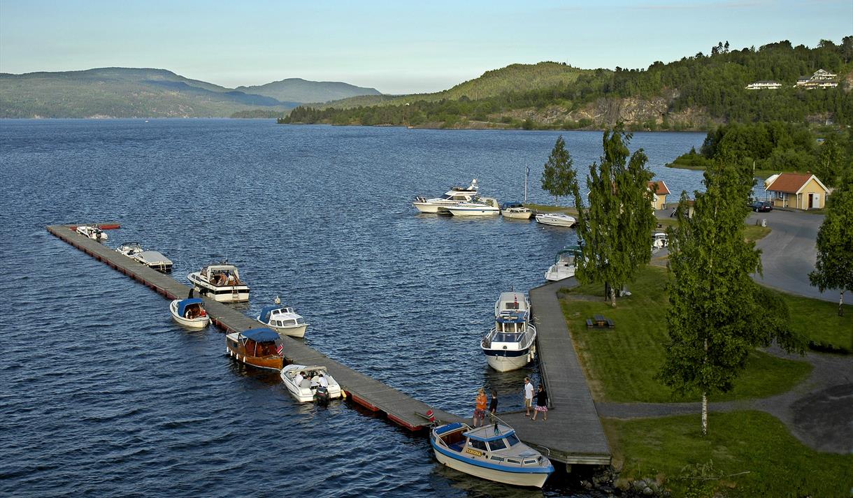 Ulefoss Gjestebryge har 11 bobilplasser, 30 båtplasser, drivstoff, vann, WC og servering i sesong.