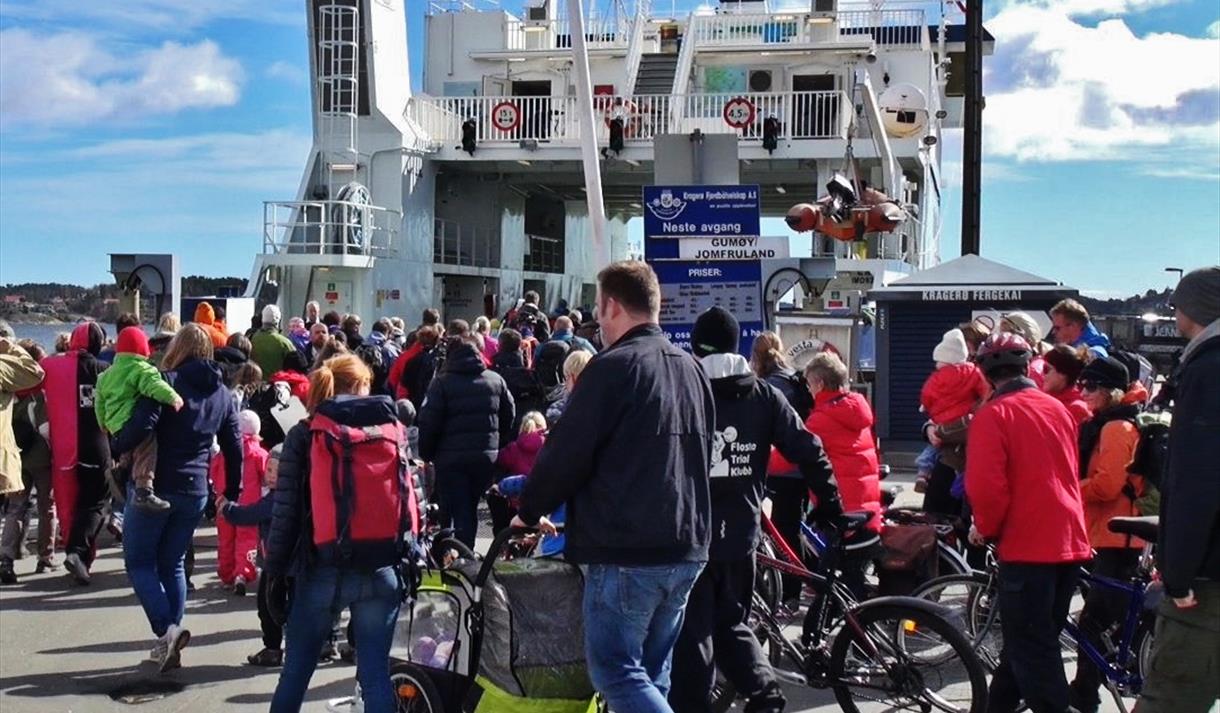 Sett deg inn i rutetidene og benytt fergene og evt. taxibåt for å oppleve de fantastiske øyene Kragerøskjærgården kan tilby. Enten om du blir på en øy eller vil oppleve flere etter hverandre har ferga hyppige daglige avganger og du kan hoppe av og på gjennom hele dagen. Et eksempel på en flott dagstur er Kragerø-Skåtøy-Jomfruland, hvor et ypperlig alternativ er å ta fergen til Skåtøy og så taxibåt videre til Jomfruland. For å oppleve mest mulig på kortest mulig tid er det ypperlig å bruke sykkelen. Les mer om øyhopping her!