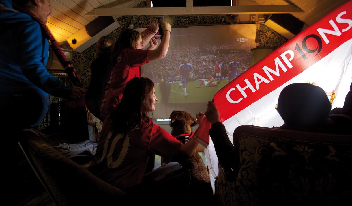 I andre etasje vises også fotball på storskjerm.