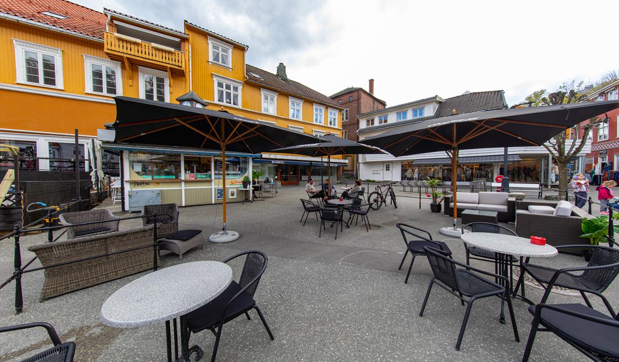 Torvkafeen er åpen i sommersesongen.