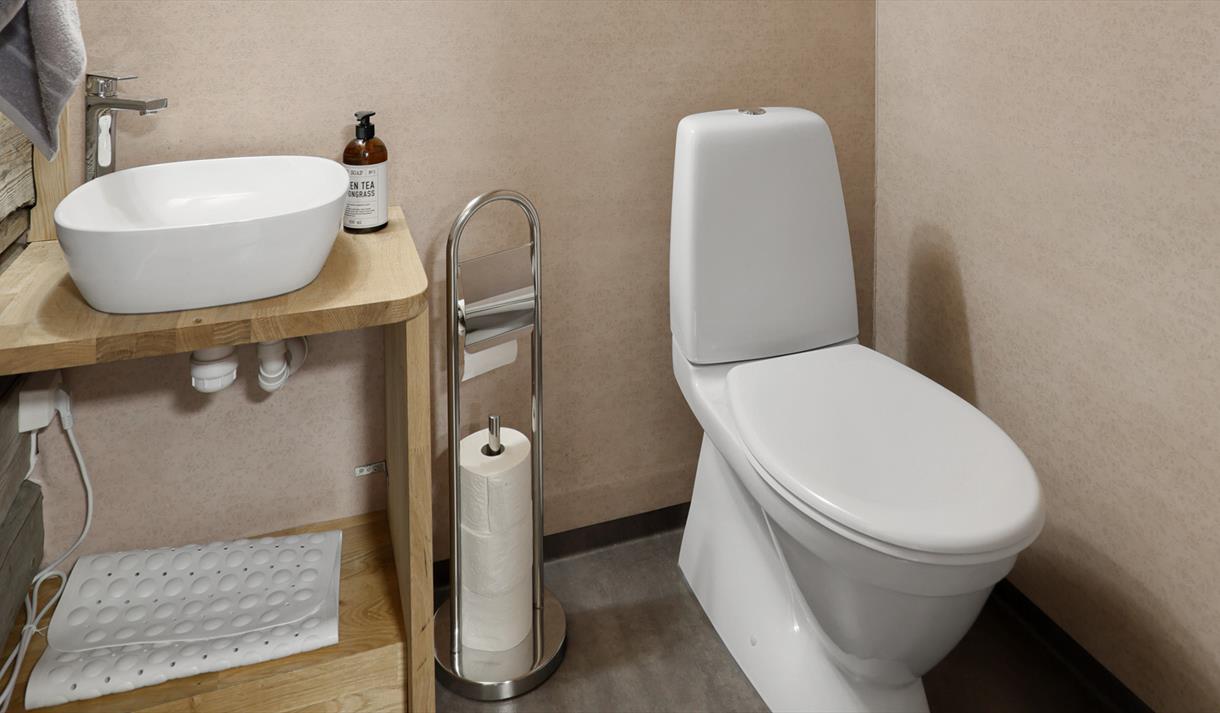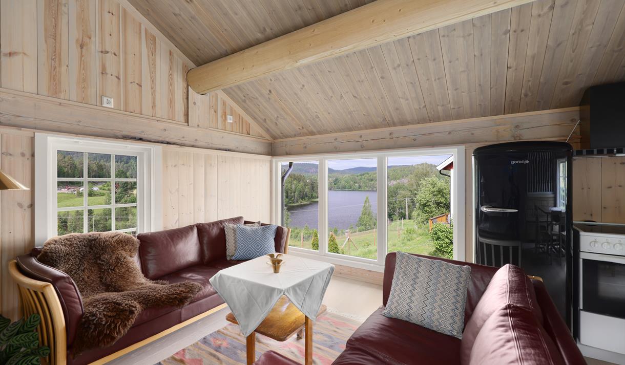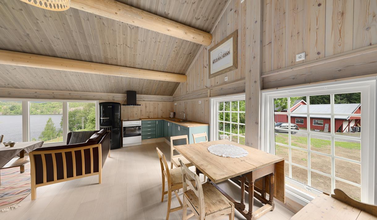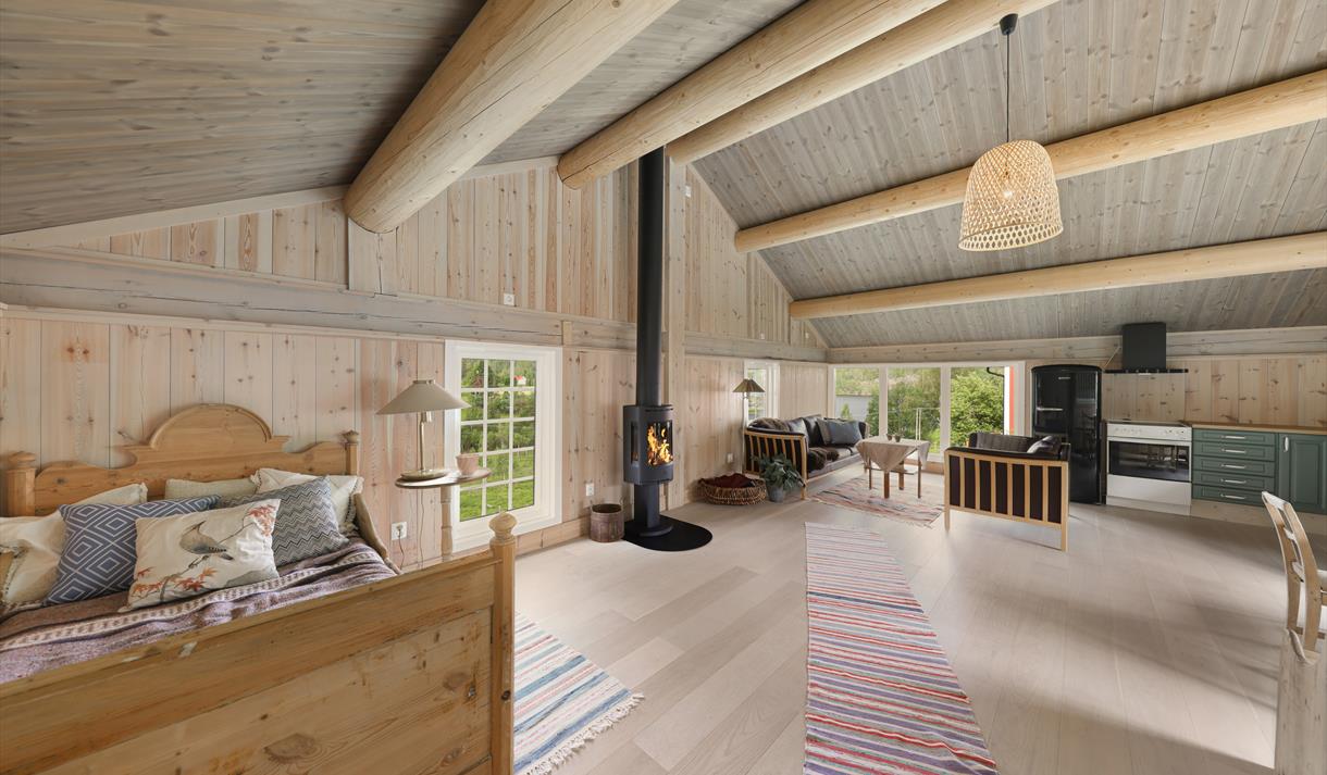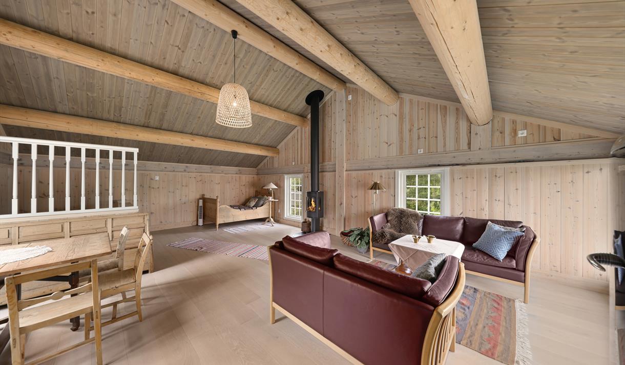 I 1. etasje er det også bygd eit nytt, lite bad med wc og dusj. Oppe i 2. etasje finn du den opphaldsrommet med kjøkken, spiseplass, utsikt og soner for avslapping.