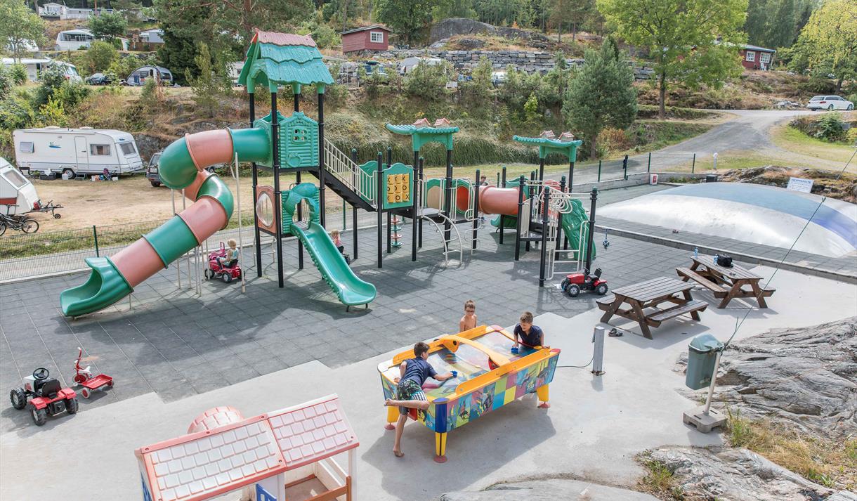 Egen sandstrand med gressplen. Lekeplass, egen brygge, servicebygg som ble bygget år 2001 med private vaskerom, stellerom, familierom, myntvaskeri, spiserom med kjøkken, butikk og resepsjon. 10 hytter 3-8 soveplasser, varmt og kaldt vann, derav 3 med dusj og toalett.