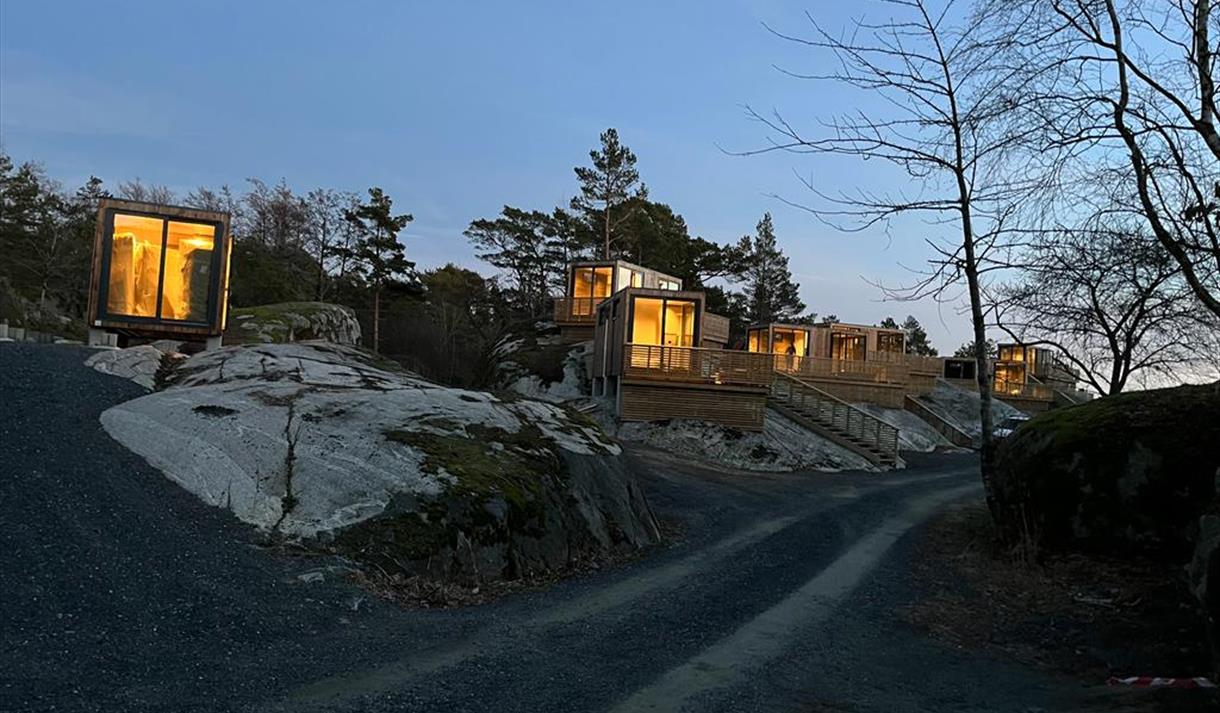 Vi tilbyr overnatting for inntil 60 personer. Inne på pensjonatet har vi 9 dobbeltrom, ca. 150 meter fra pensjonatet ligger 8 nyoppførte doble campingytter, samt glampingtelt, og vi har to nydelige sjøbuer som ligger direkte i vannkanten. Kun ett av våre rom har eget bad. Det er ellers felles servicebygg og/eller dusj/WC på området.