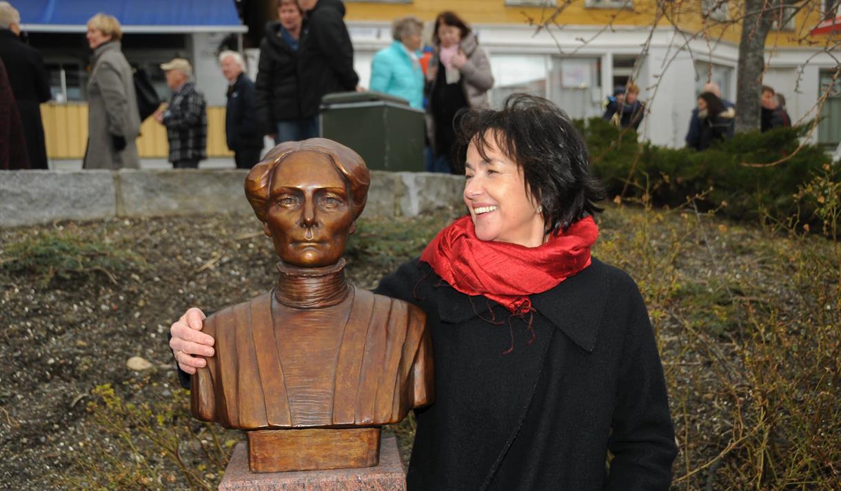 Bysten kan beundres ved Jens Lauersøns plass i Kragerø og er betalt av Likestillingsdepartementet.