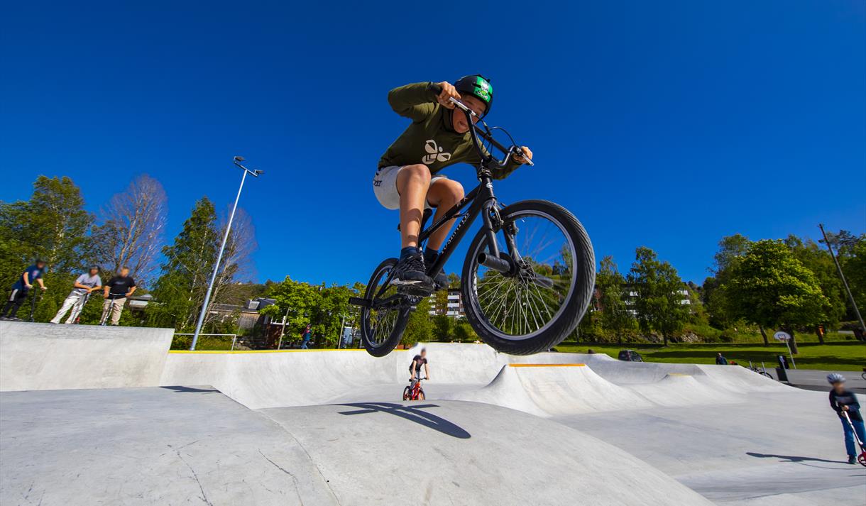 Skateparken ble ferdigstilt våren 2020, og er blant sør-Norges flotteste skateparker. Her kan små og store boltre seg med skateboard, sykkel, sparkesykkel m.m. Det er helt gratis å bruke parken.