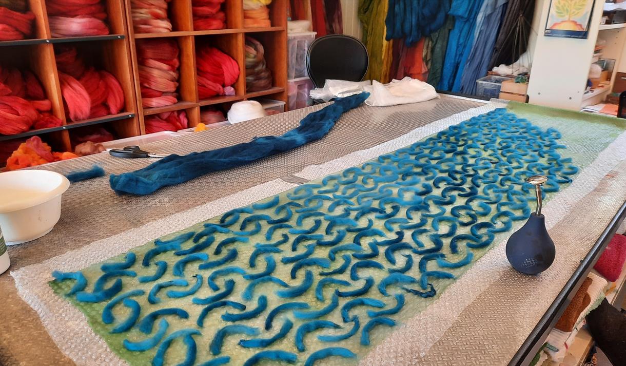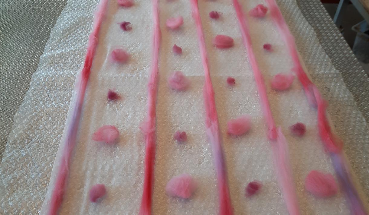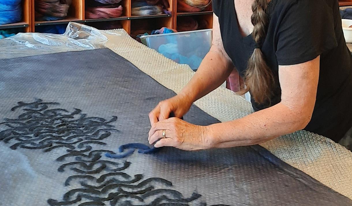 Toving er et eldgammelt håndverk som alltid har hatt en plass i vår tekstilhistorie. Teknikken går ut på å krympe kardet ull til et flatt stykke eller en form ved hjelp av (såpe)vann og bevegelse. Legger vi ut ullen på toppen av et stoff, f.eks silke får vi nunofilt, som betyr filt på vevet stoff. Ullfiberen krymper da gjennom stoffet og får det til å krinkle seg sammen på forskjellige måter slik at en helt ny tekstil oppstår. Dette skal du få prøve på kurset, og vi lager skjerf i silke og merinoull.