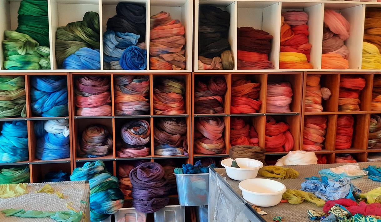 Her lærer du om merinoull og silke av May som er en dyktig kunstner innen nunofilt. Det sies at hun faktisk er verdens dyktigste og har holdt kurs i nunofilt rundt om i hele verden.