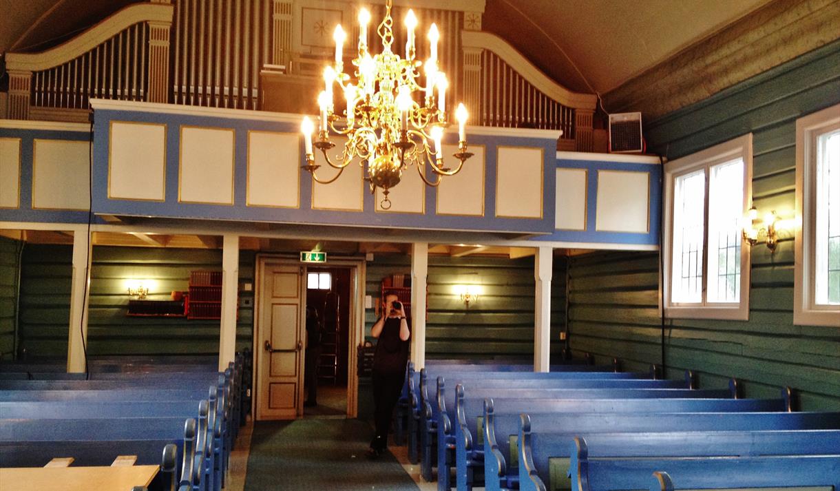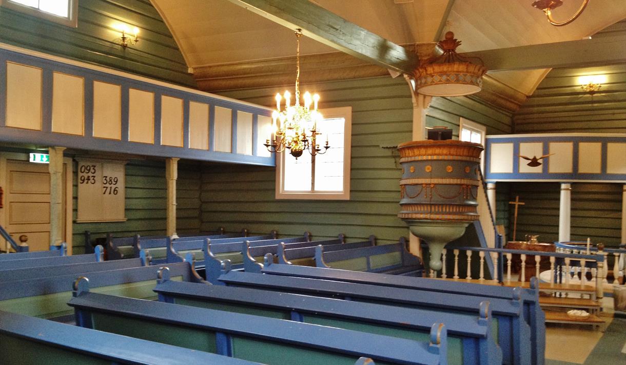 På alterbordet ligger Fredrik 2.s bibel, trykt i København i 1589, med bind av messingbeslag. Den ble i sin tid gitt av Niels Jensen Farsjø.