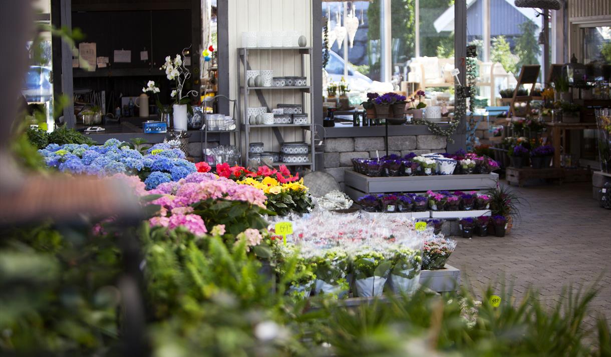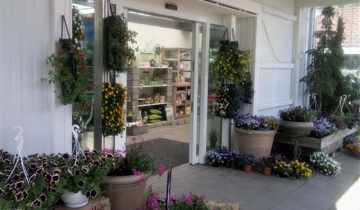 Her produseres et stort utvalg av sommerblomster i eget gartneri, blant annet fuchsia, pelargonia, lobelia og løvemunn. Hengende ampler er en hagesenterets spesialiteter – med gode hengeplanter som surfinia, verbena og million bells. Til jul er veksthuset fullt av julestjerner. Ved å produsere disse selv, oppnås en langt bedre kvalitet enn de plastinnpakkede julestjernene du får kjøpt i dagligvaren.