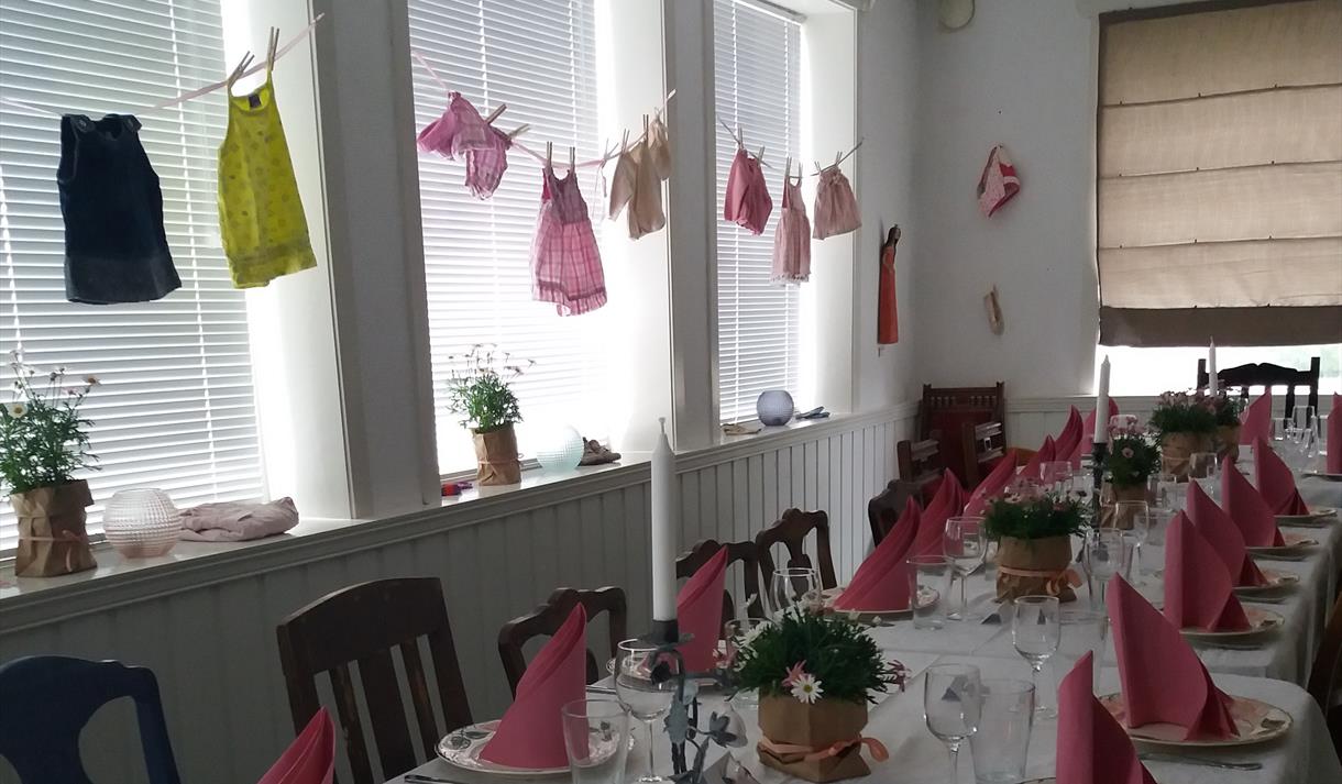 Vi har et hyggelig og rimelig retrolokale til utleie for konfirmasjon, dåp, sammenkomster m.m.
