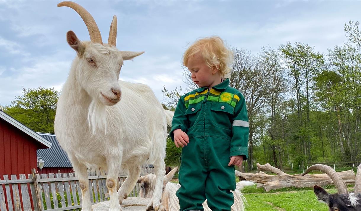 Her kan du se mange forskjellige dyr som kaniner, marsvin, ullgris, minigris, lama, emu, påfugl, høner, hester, vak, mini esel, sauer, geiter og ponnier. Noen av dyrene kan du inn å klappe og hilse på og evt ta en runde på hesteryggen. (kr 50,- ekstra for ridetur). Du kan også klatre og hoppe i høyet, leke og nyte medbrakt mat og drikke.