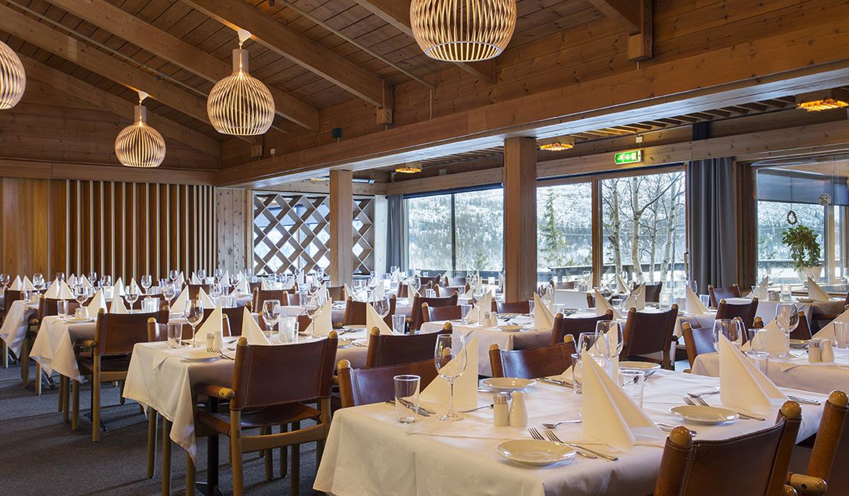 Gaustablikk Høyfjellshotell er kjent for god mat og har en hyggelig restaurant som er inndelt i flere soner. Her serveres frokost, lunsj og middag med fokus på gode råvarer, smakskombinasjoner og variasjon. Velg mellom dagens rett eller fra vår á la cartemeny. Lokalene kan åpnes opp for store selskaper og lukkes for mindre private selskap. Hotellets bar og festsal ligger ved siden av restauranten, og har shuffleboard og underholdning/livemusikk i høytidene. Gaustablikk Høyfjellshotell drifter også Gausta Food Court, som er en varmestue for Gausta Skisenter hvor det serveres god mat og drikke. Gausta Food Court har flere avdelinger som kan lukkes for private arrangement. Afterskien, The Loft, ligger over Gausta Food Court og er åpen hele vintersesongen. Gausta Food Court og The Loft ligger rett over veien for hotellet og i bunnen av en av bakkene til Gausta Skisenter.