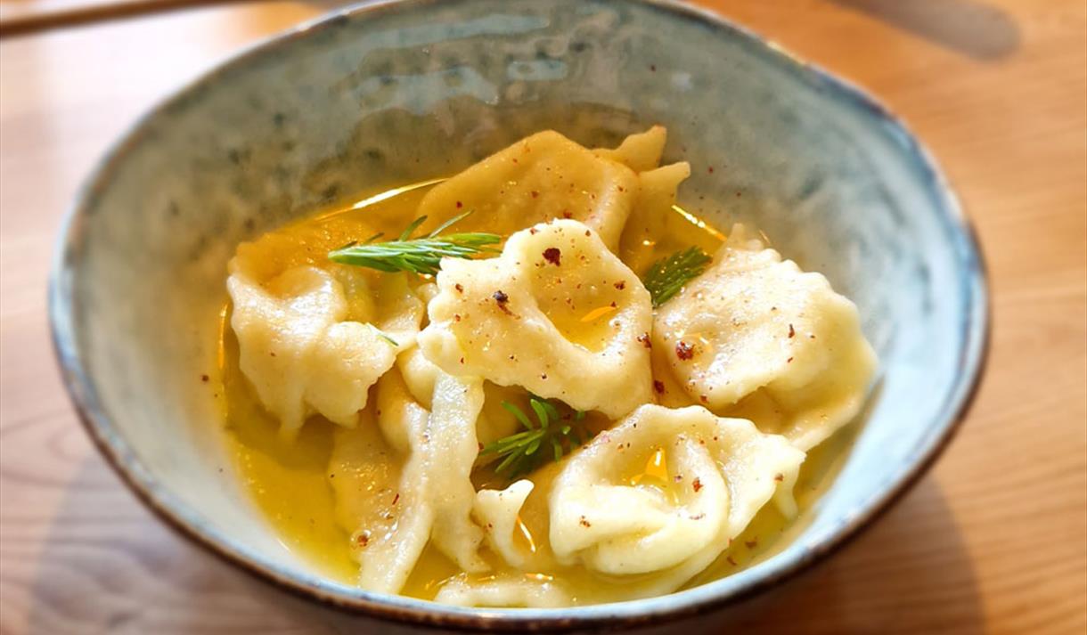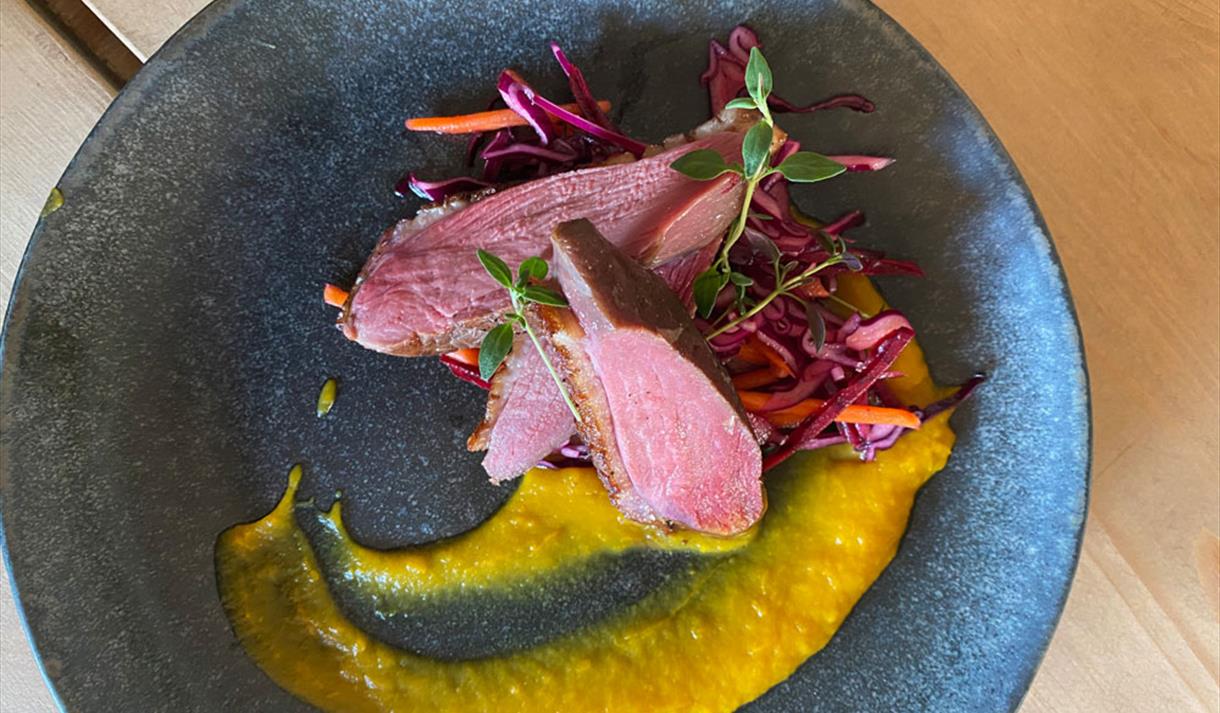 Når du spiser hos oss, får du mat laget helt fra bunnen av. Vi har et brennende engasjement for bærekraft og benytter lokale og økologiske råvarer så langt det lar seg gjøre.