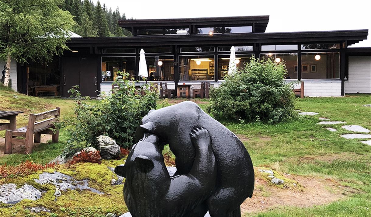 I den eine enden av tunet ligg Galleriet som presenterer kunstnaren Anne Grimdalen, men ein del av hennar skulpturar er også plassert ute framføre galleriet.