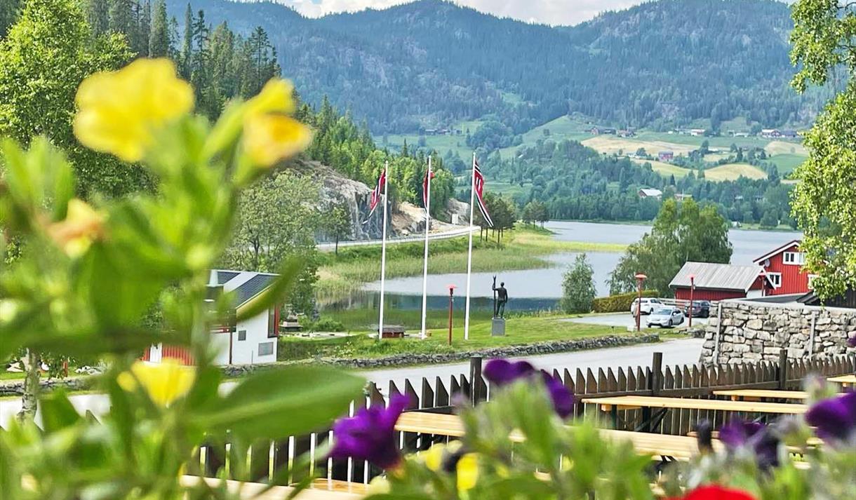 Frå utsiktsposten på Nylende, som nå er tilrettelagt som stoppestad langs vegen, ser du…