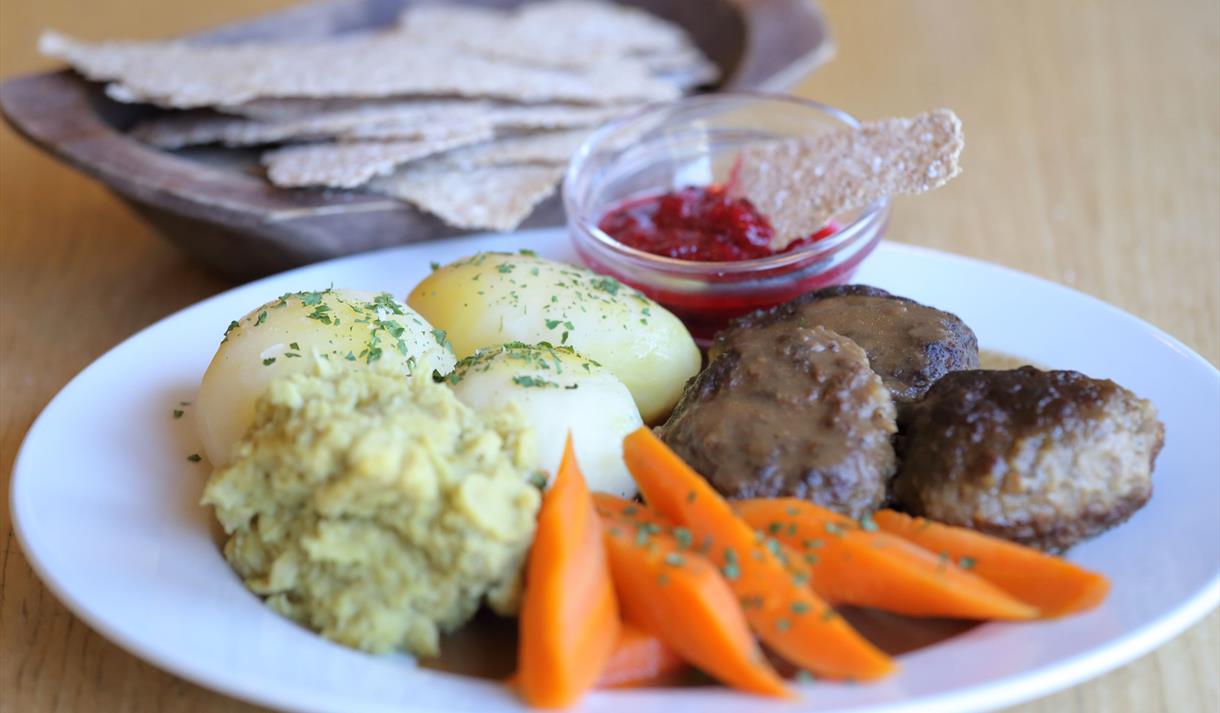 Ta deg ei pause og nyt deilig mat i kafeen på Norsk Skieventyr.