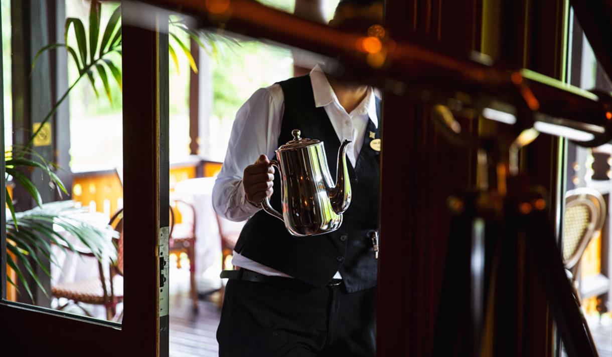 Restauranten er dekket i en tidløs, klassisk stil med hvite duker og levende lys. Servitørene bærer hvite hansker og tversoversløyfe. Hotellet har kleskode hver kveld, hvor det oppfordres til pent antrekk. For gjester som ikke har dressjakke, er det mulig å låne en på hotellet.