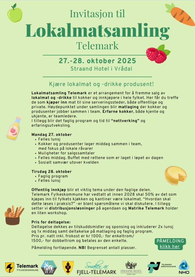 Lokalmatsamling Telemark 27.-28. oktober 2025 Straand Hotel i Vrådal