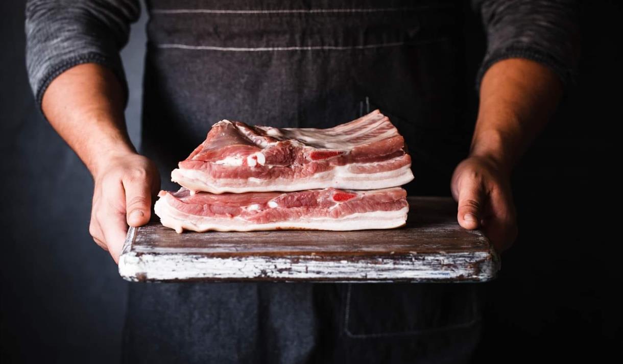 Stykningsdeler og prosesserte produkter av frilandsgris.