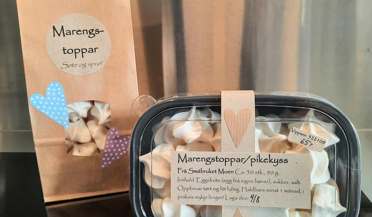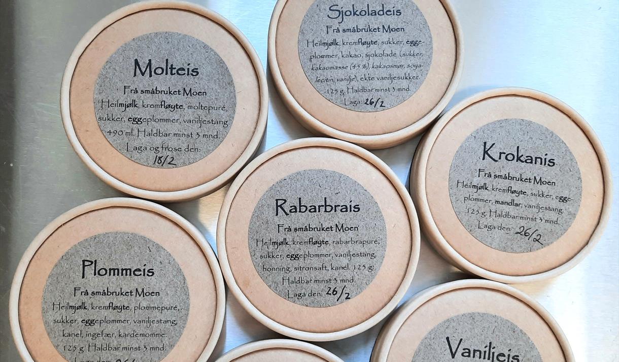 Småbruket Moen i Lårdal byr på bakarvarer, iskrem, konservar, urtesalt, te og andre matvarer baserte på honning frå eigne bier, egg frå eigne høner og grønsaker, bær, blomar og urter frå eigen kjøkenhage. Elles brukar me lokale og norske råvarer der me kan!