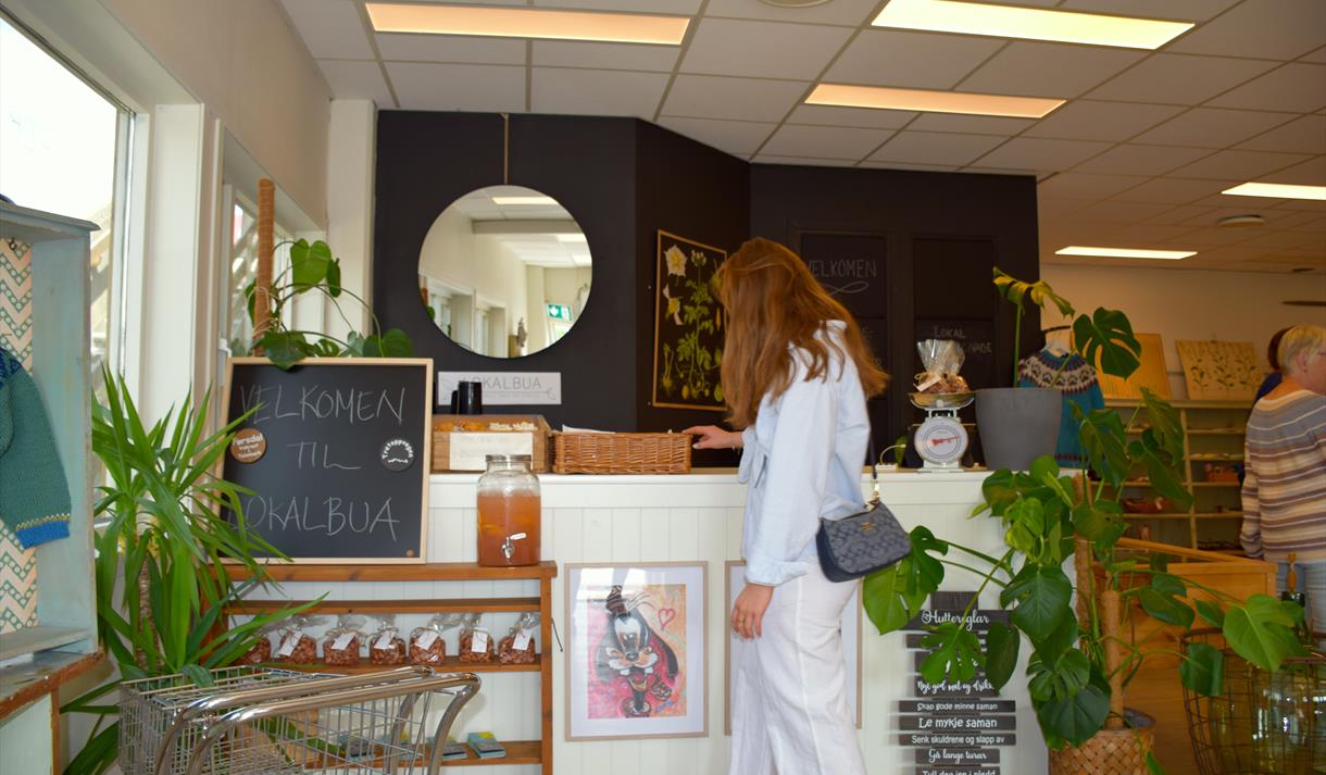 Lokalbua byr på en helt spesiell handleopplevelse og fungerer som et møtested for både fastboende og tilreisende. Du kan slå deg ned med en kopp kaffe, lokalprodusert saft eller en nystekt Tretoppbolle.
