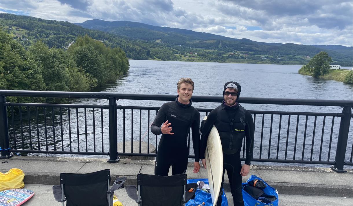 Strikksurf-show: I juni ble pionerbyen Notodden første stedet med bungee-surf (strikk-surf) i Norge. Og nå, lørdag 6. juli fra kl. 16, viser medisinstudent/livredder Nic Frazier (nå bosatt på Vestsida, opprinnelig fra Malibu, California) og Lucas Berget hvordan denne vannsporten fungerer. Aktiviteten er blitt svært populær i bl.a. Zürich. Ved hjelp av en håndsydd strikk fra Sveits, festet i gangbrua over Tinnelva, viser de hvordan det skal gjøres. Lyst til å prøve? Da må du først ha bestått Level 1 (SUP) og Level 2 (elektrisk surfebrett) hos Notodden Opplevelser, i samarbeid med Leland Expeditions.