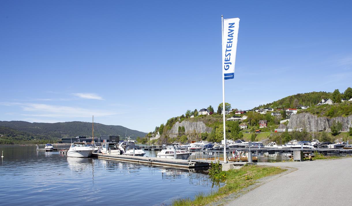 Fra Notodden sentrum følger du E134 mot Haugesund i ca. 350 meter før du tar av til venstre – da er du straks fremme på bystranda.