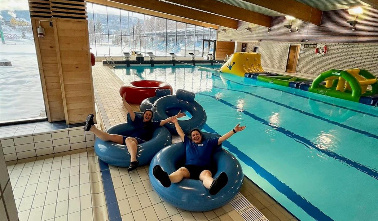 På Tinfos bad kan du trene, mosjonere, løsne opp i muskler og ledd i temperert boblebad eller duppe i varmtvannsbassenget. Det er også mulighet til å sette seg i dampbadet vårt eller ta en tur i badstuen. Du kan kjøpe drikke og en matbit i kiosken. Vi ligger på Tinfosøyren, ved siden av Idrettsparken og er åpen for publikum aller dager i uken. Tinfos bad – Notoddens beste svømmehall!