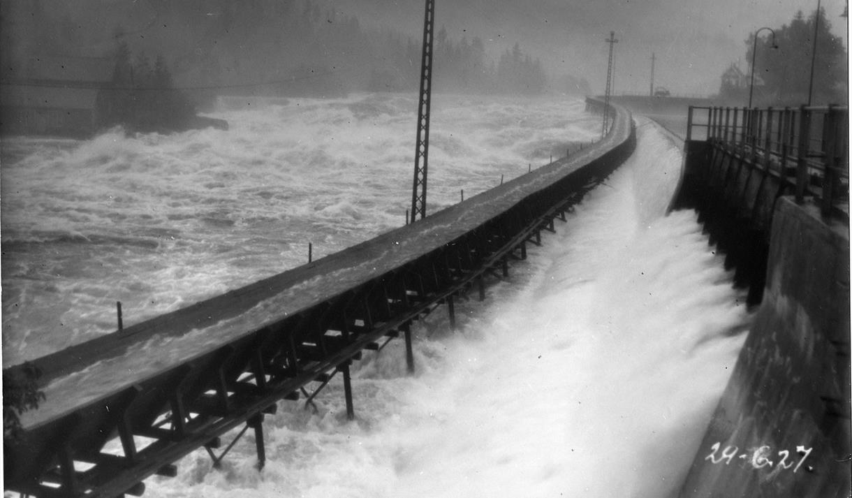 For å øke fallet inn til Tinfos 2 ble vannet fra Sagafossen ledet inn i den nybygde…