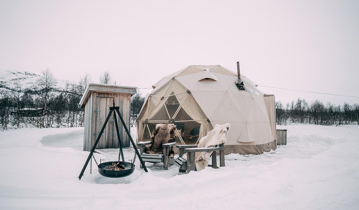 Arctic Domen er designet for en lun og koselig atmosfære, med alt du trenger for et komfortabelt opphold i naturen.