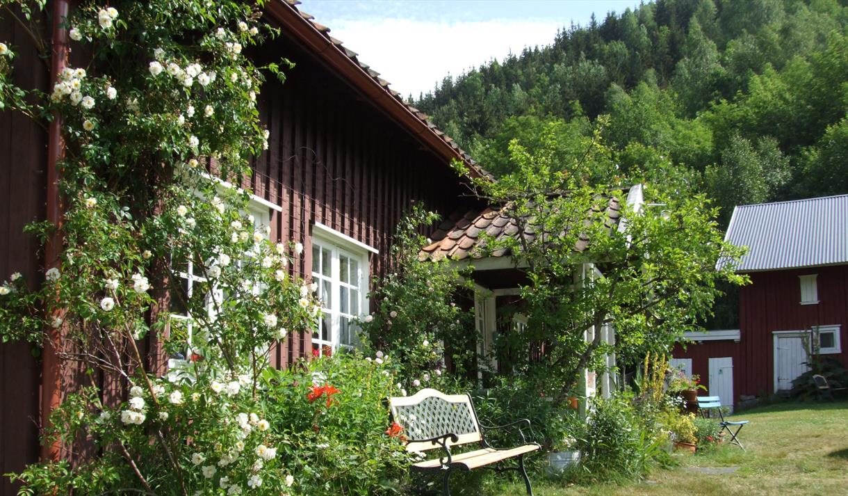 Økologisk urtegård med ca. 400 krydder og medisinplanter, roser, gamle stauder og liljer.