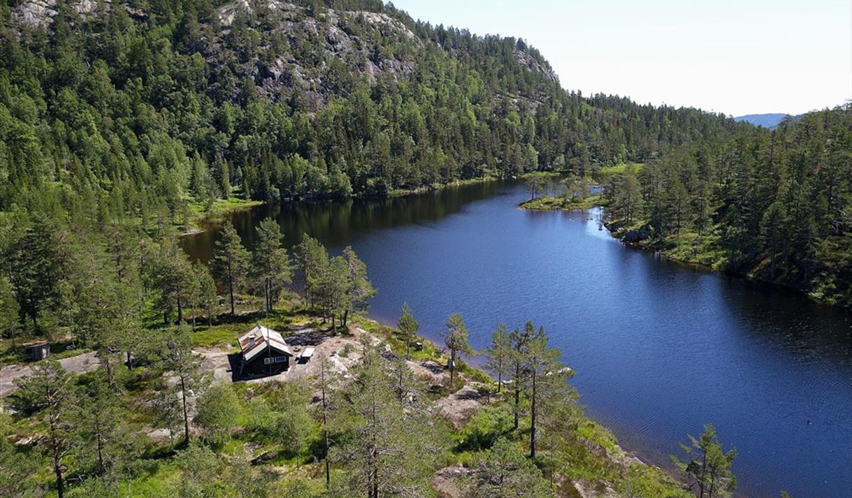 Bjørkbu ligger langt inne i Drangedals dype skoger, helt på grensa til Gjerstad kommune i Aust-Agder. Selve kjøreturen inn til hytta er en opplevelse i seg selv, der du kjører mange kilometer gjennom flotte skogsområder.