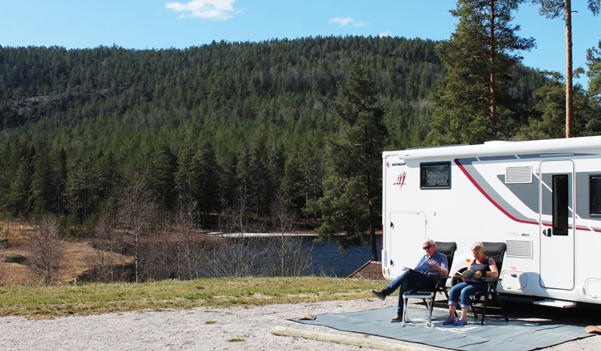 Rimelig bobilparkering idyllisk plassert inntil Drangedal Bygdetun. Fra her har du kort vei til sentrumsfasiliteter, kultur og flott natur.