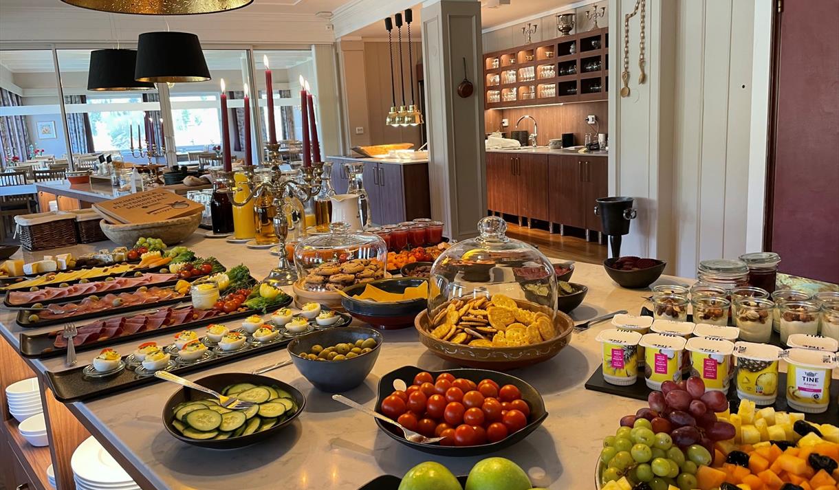 Hotellet serverer lunsj og middag hele uka. I tillegg tilbyr restauranten à la carte meny med 3- og 5-retters middager. Og hver søndag frister hotellet med en deilig søndagsbuffet. I sommersesongen er det også uteservering.